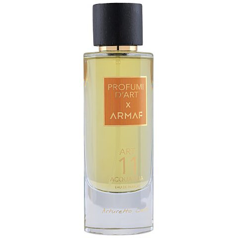 Armaf Art 11 Acqua Tua otwiera się złożonym połączeniem morskich nut, które wprowadzają świeżość i energię, z różowym pieprzem, dodającym pikantności oraz grejpfrutem, który wnosi soczystą, cytrusową nutę. Szałwia muszkatołowa, bergamotka i kadzidło tworzą harmonijną, aromatyczną całość, podczas gdy szafran, pieprz, imbir, lima, timur i mandarynka dodają głębi i złożoności, tworząc wyjątkowy, zmysłowy wstęp. W sercu zapachu jaśmin i kocanka łączą się w elegancką, kwiatową kompozycję, dodając słodyczy i delikatności. Baza emanuje ciepłem i bogactwem, gdzie drewno sandałowe łączy się z intensywnym agarowym oudem, a żywica wprowadza balsamiczne tony. Piżmo i mech dodają zmysłowości i trwałości, tworząc wyjątkowy, głęboki aromat, który pozostaje na skórze przez długi czas.