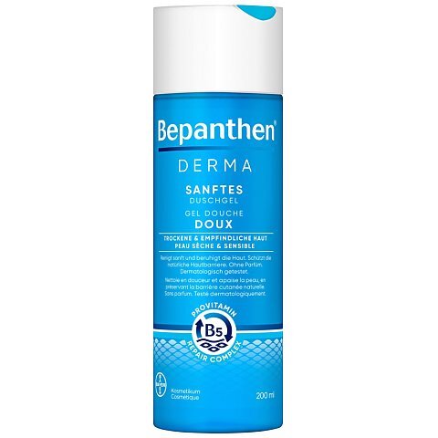 Bepanthen Derma - żel do mycia ciała został opracowany specjalnie do oczyszczania suchej i wrażliwej skóry całej rodziny. Formuła bez mydła delikatnie oczyszcza, chroni i odżywia skórę, zachowując jej naturalny poziom nawilżenia. Żel tworzy delikatną pianę, która łagodnie oczyszcza skórę, nie naruszając jej naturalnej bariery ochronnej. Natychmiastowo łagodzi uczucie napięcia i suchości, pozostawiając skórę gładszą, bardziej elastyczną i komfortową w dotyku. Łatwo się spłukuje, dając uczucie świeżości i czystości.