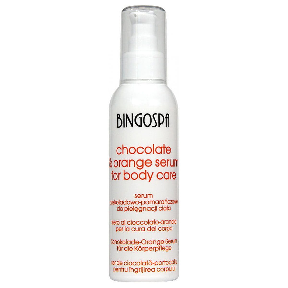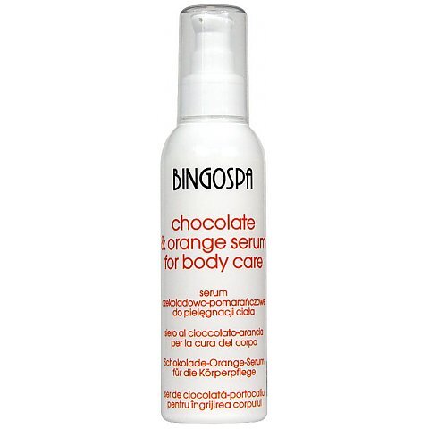 BingoSpa - aksamitne i delikatne, czekoladowo-pomarańczowe serum do pielęgnacji ciała to odżywczy kompres, który ożywi i przywróci młodzieńczy blask zmęczonej i suchej skórze. Ziarno kakaowca, z którego powstaje czekolada zawiera wiele cennych dla skóry substancji, posiada zdolność zmiękczania skóry. Poza tym wykazuje działanie odmładzające i odświeża skórę, skutecznie likwiduje suchości skóry. Antyoksydanty, czyli składniki spowalniające proces starzenia się skóry, znajdujące się w czekoladzie, zapobiegają rozwojowi wolnych rodników, które wpływają na utratę przez skórę kolagenu, elastyny i innych protein. Składniki produktu drenują i pobudzają metabolizm komórkowy, regenerują i działają kojąco.