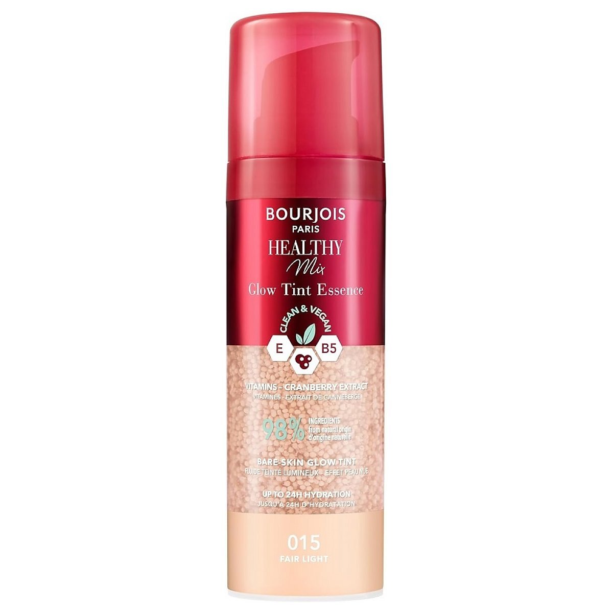 Bourjois Healthy Mix Glow Tint Essence - esencja do twarzy, wzbogacona o perełki pigmentu wyrównuje koloryt skóry, zmniejsza widoczność porów i zaczerwienień, a także upiększa cerę, nadając jej pięknego blasku. Esencja, która w 71% składa się z wody zapewnia jej nawet 24-godzinne nawilżenie. To doskonały kosmetyk do używania solo, ale sprawdzi się także jako upiększająca baza pod podkład. Esencja do twarzy Bourjois dostępna jest w 3 odcieniach, które z łatwością dopasujesz do swojej karnacji.