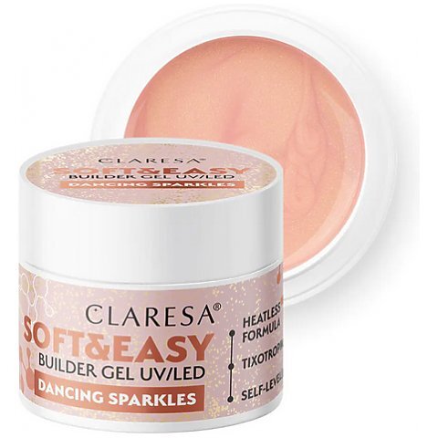 Claresa Soft & Easy Builder Gel UV/LED - to produkt, za pomocą którego przedłużysz i nadbudujesz płytkę paznokcia. Produkt o wytrzymałej i odpornej na kruszenie formule. Żel posiada gęstą konsystencję. Pozostawia warstwę dyspersyjną.