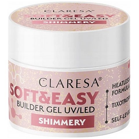 Claresa Soft & Easy Builder Gel UV/LED - to produkt, za pomocą którego przedłużysz i nadbudujesz płytkę paznokcia. Produkt o wytrzymałej i odpornej na kruszenie formule. Żel posiada gęstą konsystencję. Pozostawia warstwę dyspersyjną.