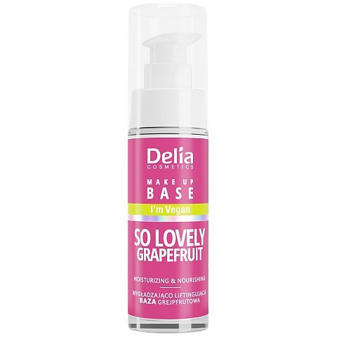 Delia Vegan Make Up Base - powiedz NIE suchej i zmęczonej skórze! Powiedz TAK nawilżonej i zdrowej skórze, doskonale przygotowanej do nałożenia makijażu! Funkcje bazy połączone z właściwości serum – oto wyjątkowa propozycja od marki Delia, która pozwoli Ci doskonale przygotować cerę pod makijaż. Baza ma lekką, żelową konsystencję i cytrusowy aromat dojrzałych grejpfrutów. Silnie nawilżające właściwości bazy sprawią, że Twoja skóra będzie w doskonałej kondycji przez cały dzień, a Twój makijaż pozostanie świeży na dłużej!