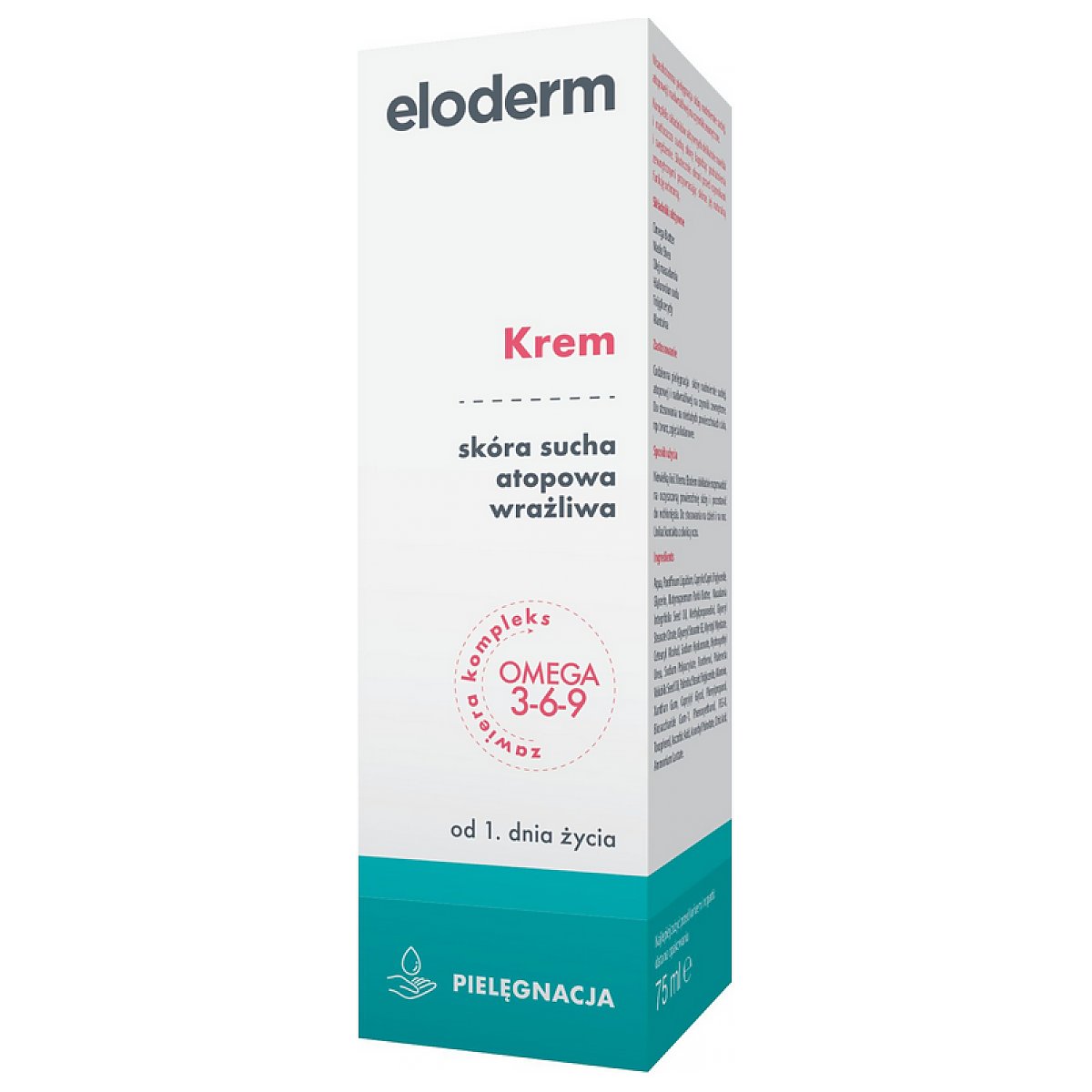 Eloderm - krem do pielęgnacji skóry Eloderm od 1 dnia życia, pojemność 75 ml. Preparat przystosowany do skóry suchej, atopowej. Efektywnie nawilża, natłuszcza, łagodzi podrażnienia, a także gwarantuje zdrowy wygląd. Produkt przebadany dermatologicznie, hypoalergiczny.