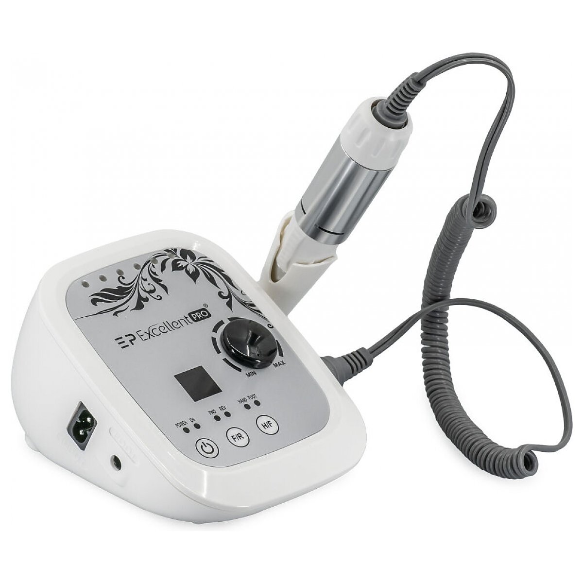 Excellent PRO Master Power - model frezarki wyróżnia się wysoką jakością wykonania oraz dużą mocą. Nowoczesny projekt w oparciu o wieloletnie doświadczenie. Nowoczesne procesy technologiczne, najlepsze materiały i komponenty, a także staranne wykonanie to gwarancja wysokiej jakości. Excellent PRO Frezarka Master Power 45W to frezarka stworzona głównie z myślą o profesjonalnych stylistkach paznokci, ale świetnie sprawdzi się także do użytku domowego. Frezarka MASTER to wynik długotrwałych testów i kontroli, które zaowocowały frezarką niezawodną, bezawaryjną o wysokiej jakości i w przystępnej cenie. Skrupulatnie wyselekcjonowane oraz najmniej awaryjne części i podzespoły pozwoliły nam na stworzenie urządzenia o niewielkich gabarytach, cichego, ale z dużą mocą. Lekka, ergonomiczna rączka sprawia, że praca jest szybka i przyjemna. Wymiana frezów jest bezproblemowa dzięki mechanizmowi "twist-lock". Dotykowy wyświetlacz minimalizuje ryzyko zapylenia wewnątrz frezarki. Dodatkowym atutem jest uchwyt na rączkę frezarki, gdzie możesz odłożyć ją podczas nieużywania a który możesz również łatwo zdemontować. Moc można regulować za pomocą pokrętła na urządzeniu bądź pedałem dołączonym do zestawu.