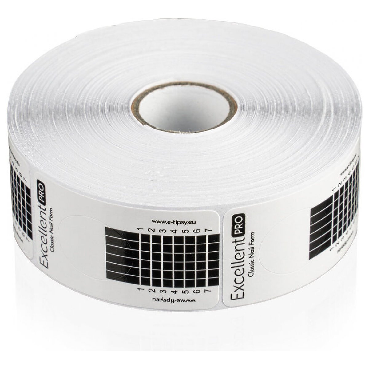 Excellent PRO Classic Nail Form - szablony służą do przedłużania płytki paznokcia metodą żelową lub hybrydową bez użycia tipsów oraz kleju. Rolka zawiera 500 sztuk szablonów. Szablony dla zwolenników bardziej klasycznych form. To szablony proste, z czytelną podziałką, dzięki której w łatwy i szybki sposób przedłużysz paznokcie. Szablony wyróżniają się mocnym, antyalergicznym klejem, nie odklejają się w trakcie pracy. Z łatwością podkłada się je pod paznokieć.