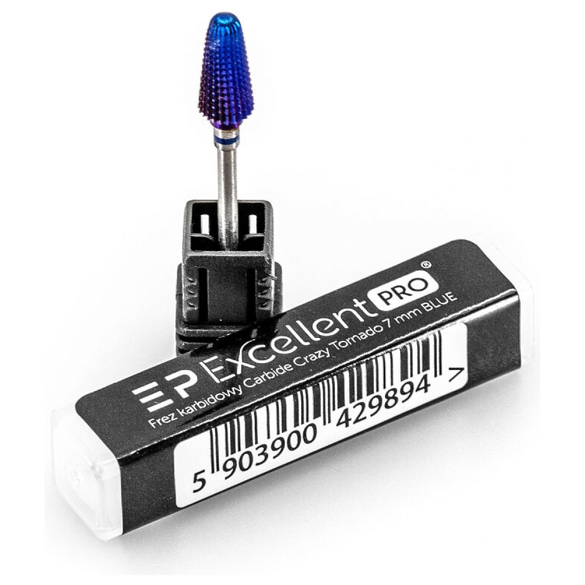 Excellent PRO Carbide Crazy Tornado - profesjonalny, karbidowy frez w kształcie zaokrąglonego stożka z węglika spiekanego, który jest bardzo trwałym surowcem pozwalającym na użytkowanie przez długi okres czasu. Bardzo mocny frez o specjalnej technice ułożenia ząbków pozwoli na szybkie i skuteczne usunięcie masy żelowej, akrylowo-żelowej oraz akrylowej. Dodatkowo odpowiednio zaprojektowana powierzchnia frezu pozwala na odpowiednie odprowadzanie ciepła, dzięki czemu frez nie nagrzewa się i nie pozwala na nagrzanie płytki. Frez można dezynfekować i sterylizować w bezpieczny sposób.