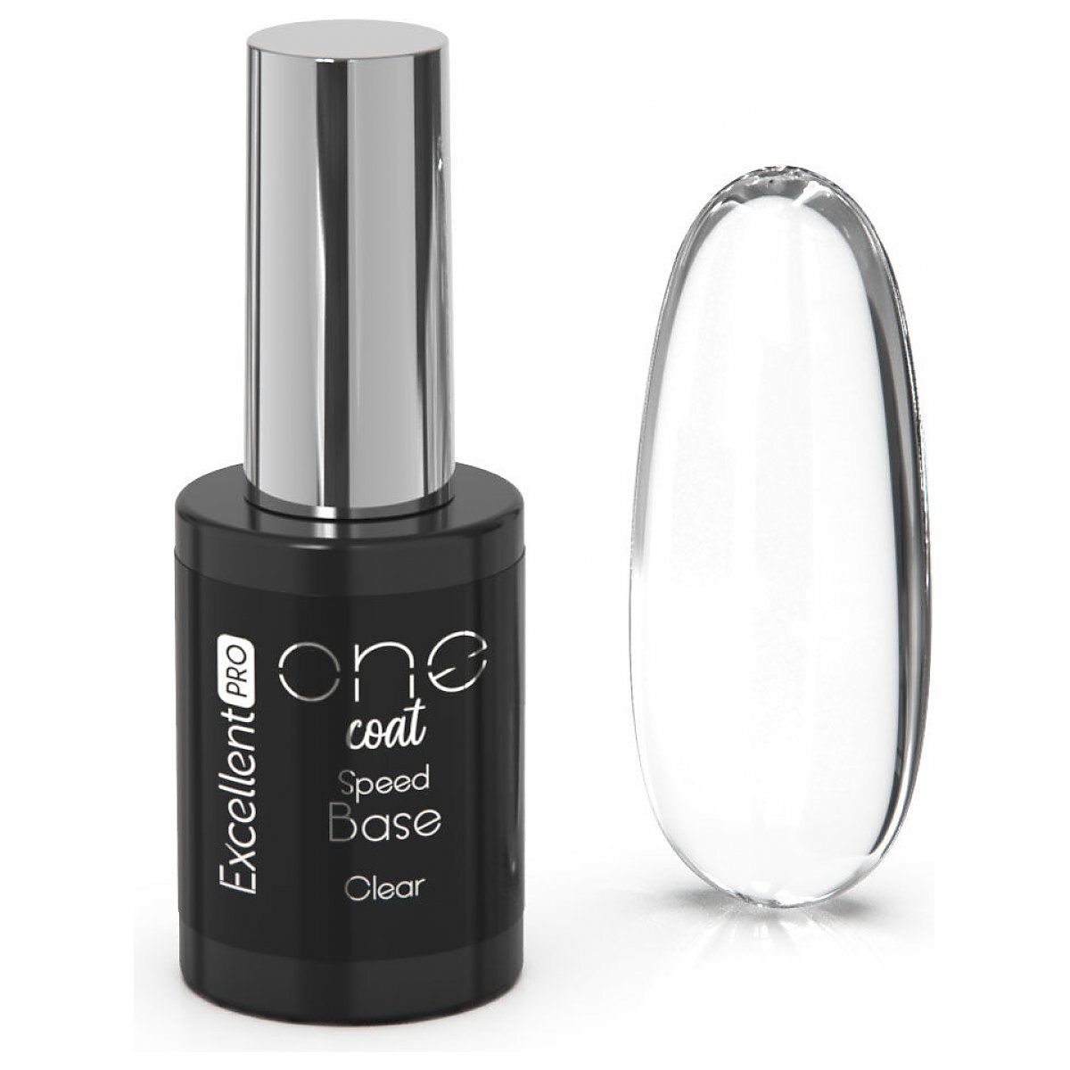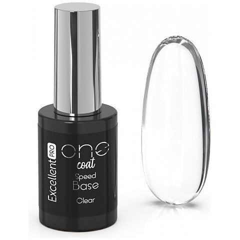 Excellent PRO One Coat Speed Base - baza hybrydowa pod lakiery hybrydow. Ta elastyczna baza doskonale pracuje z płytką, eliminując tym samym ryzyko jej uszkodzeń. Niezwykle trwały i wytrzymały produkt, którym wyrównasz niewielkie nierówności płytki. Przeznaczona do szybkiej pracy, dobrze się poziomuje. Użycie bazy zwiększa trwałość manicure i przyczepność lakierów hybrydowych a także chroni płytkę paznokciową nawet do 4 tygodni.