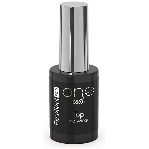 Excellent PRO One Coat Top No Wipe - nabłyszczający top no wipe z linii ONE COAT odporny jak szkło hartowane. Wyjątkowo błyszczący top bez warstwy dyspersyjnej szczególnie polecany jako wykończenie manicure hybrydowego oraz żelowego stworzonego produktami Excellent PRO. Top dzięki któremu błysk na paznokciach utrzyma się nawet do 4 tygodni bez zżółcania lakieru hybrydowego i odprysków. Szczególnie trwały oraz odporny na zarysowania i uszkodzenia mechaniczne pozwoli cieszyć się piękną stylizacją przez wiele tygodni.