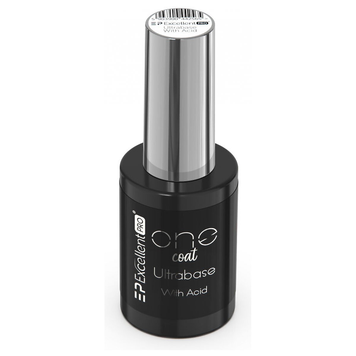 Excellent PRO One Coat Ultrabase With Acid - baza kwasowa do stosowania w manicure hybrydowym oraz żelowym przy płytkach problematycznych z tendencją do zapowietrzeń i liftingów. Idealnie sprawdzi się w przypadku trudnych paznokci m.in. do twardej płytki, potrzebującej większego wytrawienia. Doskonale zwiększy przyczepność produktów nakładanych w późniejszym czasie.