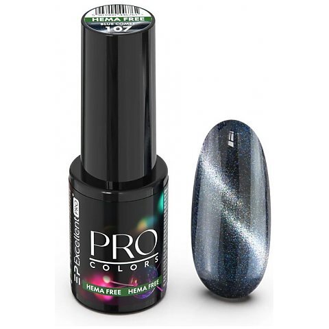 Excellent PRO Colors Hema Free Cat Eye - lakier hybrydowy o średnio gęstej formule, która gładko rozprowadza się po płytce bez spływania na skórki. Wysoka pigmentacja zapewnia intensywny kolor już po jednej warstwie. Malowanie jest szybkie i precyzyjne – idealne do pracy w salonie.