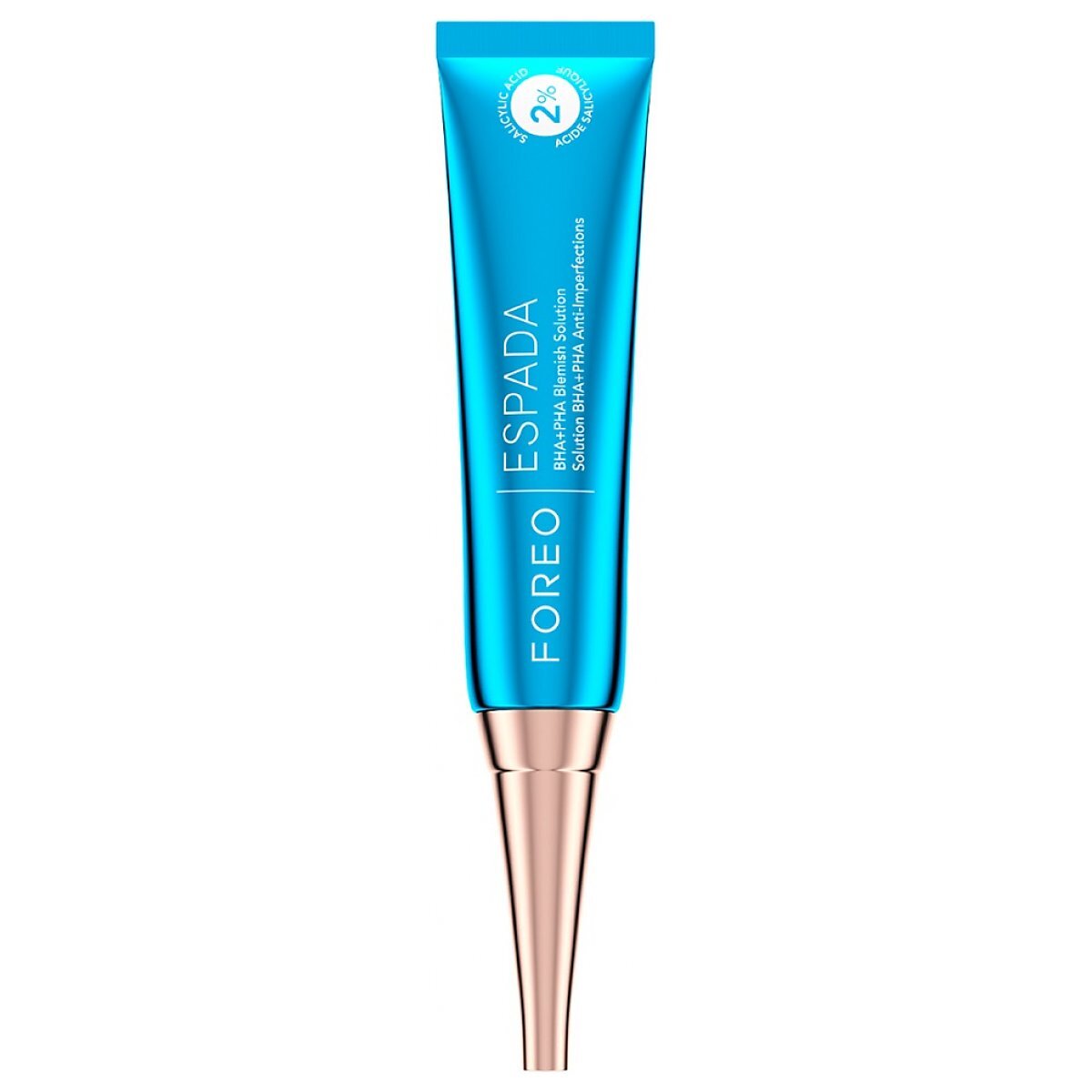 Foreo Espada BHA+PHA Blemish Solution - wysoce skoncentrowany, ale jednocześnie delikatny produkt do walki z niedoskonałościami. Jego formuła zawiera potężną mieszankę 2% kwasu salicylowego i wyciągu z oczaru wirginijskiego, które odblokowują pory i delikatnie złuszczają martwy naskórek. Niacynamid i olejek z drzewa herbacianego pomagają zmniejszyć zaczerwienienie i pojawienie się nowych wyprysków. Pantenol i kwas laktobionowy działają kojąco na skórę, nawilżają ją i chronią przed przesuszeniem. W połączeniu z urządzeniem leczącym trądzik niebieskim światłem LED, eliminuje zanieczyszczenia z podwójną mocą.
