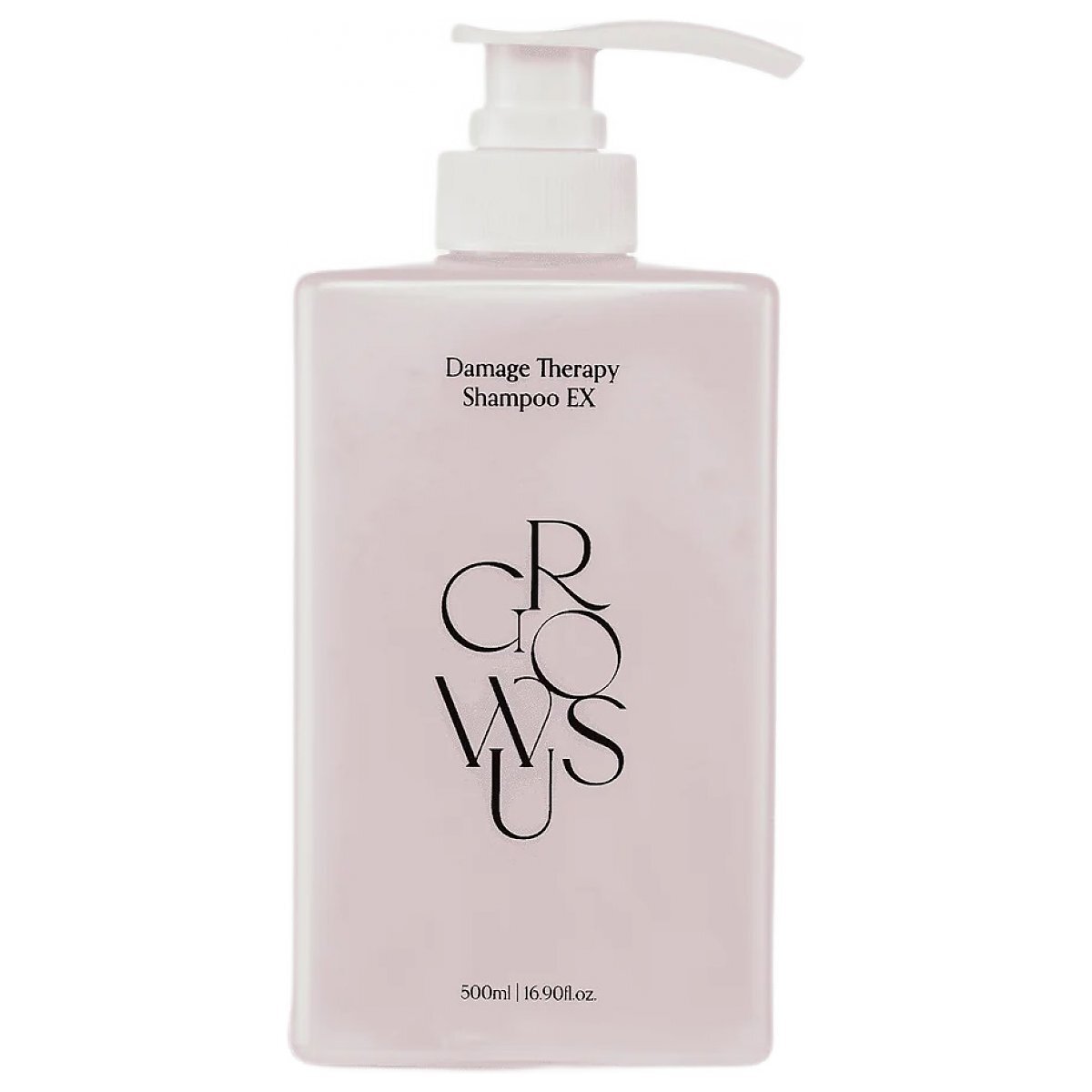 GROWUS Damage Therapy Shampoo EX - luksusowy szampon, który intensywnie oczyszcza, odbudowuje i wzmacnia zniszczone włosy o wysokiej porowatości. Jego gęsta, kremowa konsystencja delikatnie usuwa zanieczyszczenia dzięki roślinnym surfaktantom, bezpiecznym nawet dla wrażliwej skóry głowy, jednocześnie nasycając pasma składnikami odżywczymi i nadając im jedwabisty, zdrowy wygląd. Dogłębnie oczyszcza i odżywia włosy oraz skórę głowy. Odbudowuje osłabione włókna włosów i wzmacnia strukturę. Zatrzymuje wilgoć we włosach i chroni przed uszkodzeniami środowiskowymi oraz cieplnymi. Redukuje puszenie i rozdwajanie się końcówek, pozostawiając włosy miękkie, lśniące i sprężyste.