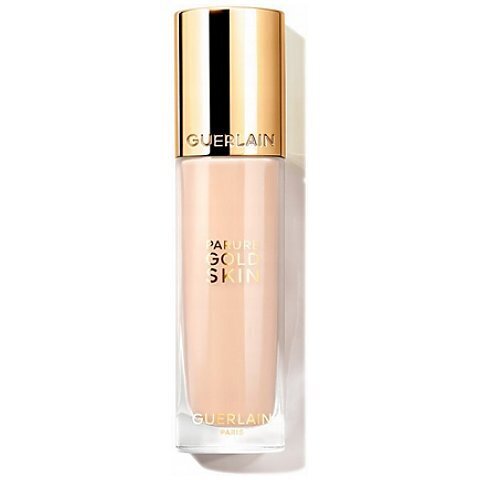 Guerlain Parure Gold Skin - podkład o matowo - aksamitnym wykończeniu o trwałości nawet do 24 godzin. Powstał on na bazie 85% składników pielęgnacyjnych. Dzięki temu przy każdym nałożeniu nie tylko ujednolica koloryt, ale również dba o naszą cerę. Zawartość 24-karatowego złota w połączeniu z duetem ekstraktów z białej piwonii wykazują działanie poprawiające stan skóry. Subtelny kwiatowo - owocowy zapach umila aplikację.