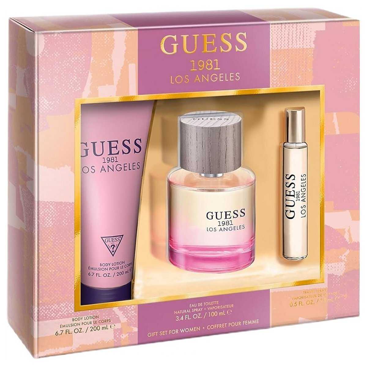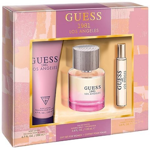 Zestaw upominkowy zawiera wodę toaletową o pojemności 100ml, wodę toaletową o pojemności 15ml oraz balsam do ciała o pojemności 200ml. Los Angeles to beztroskie, zmysłowe ucieleśnienie kalifornijskiego wizerunku i ducha przygód Guess. Orientalno-kwiatowa mieszanka idealna dla pewnych siebie kobiet.