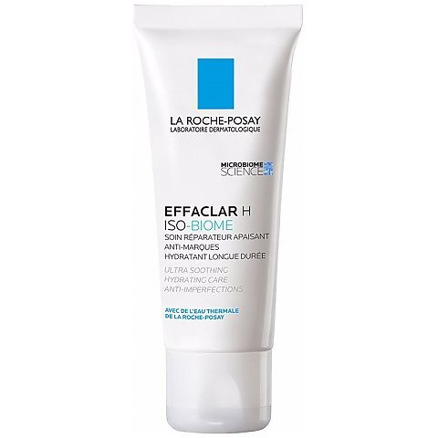La Roche Posay Effaclar H Iso-Biome - nawilżający krem do skóry wrażliwej i skłonnej do niedoskonałości. Został opracowany z wykorzystaniem dermatologicznych składników aktywnych o wysokiej skuteczności i wysokiej tolerancji, do skóry odwodnionej z niedoskonałościami pomaga ukoić, naprawić i nawilżyć skórę, jednocześnie redukując ślady i niedoskonałości. Zawiera w swoim składzie nawilżającą glicerynę i zmiękczający skwalan. Utrzymują one skórę na optymalnym poziomie nawilżenia nawet do 48 godzin. Krem zawiera składniki aktywne doceniane za naprawę skóry. Zawiera witaminę B5, która stymuluje odnowę komórkową, niacynamid i procerad, które pomagają odbudować funkcję barierową naskórka, Aqua Posae Filiformis, przeciwzapalny prebiotyk, który działa na mikrobiom skóry, oraz termalną wodę źródlaną La Roche Posay, która jest naturalnie kojąca i regenerująca. Skóra jest ukojona, a bariera skórna wzmocniona, gotowa do lepszego spełniania swojej roli tarczy ochronnej. Zawarty w kremie Procerad do cery suchej z wypryskami działa również modulująco, ograniczając reakcje zapalne, a tym samym ślady potrądzikowe. Ekstrakt z Bixa Orellana hamuje hiperkeratynizację odpowiedzialną za zatykanie porów, a także zmniejsza aktywność gruczołów łojowych i produkcję sebum. Niedoskonałości są coraz mniej widoczne.