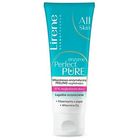 Lirene Enzyme Perfect Pure - enzymatyczny peeling wygładzający. Witaminowo-enzymatyczny peeling wygładzający skutecznie oczyszcza pory oraz usuwa martwe komórki naskórka, stymulując proces odnowy skóry. Jest to idealny produkt dla każdej cery, w tym również dla cery wrażliwej.