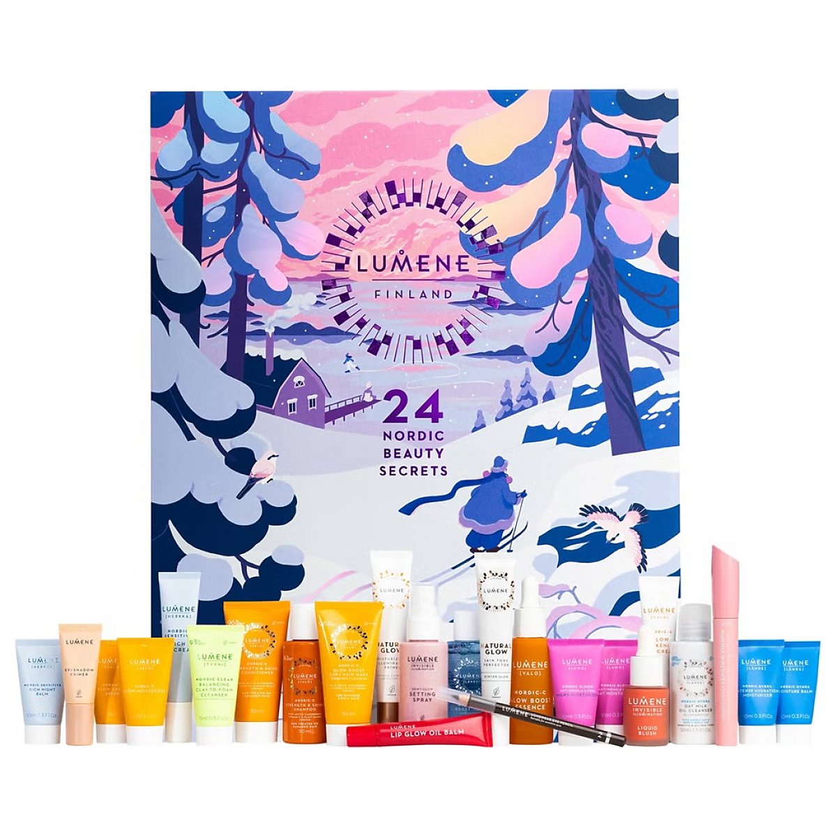 Lumene 24 Nordic Beauty Secrets - kalendarz adwentowy to luksusowa podróż w świat nordyckiej urody. Za 24 drzwiczkami kryją się starannie wybrane kosmetyki do pielęgnacji i makijażu, pozwalające codziennie odkrywać nowe niespodzianki – od nawilżających kuracji, przez rozświetlające zabiegi, po produkty podkreślające naturalny blask skóry.