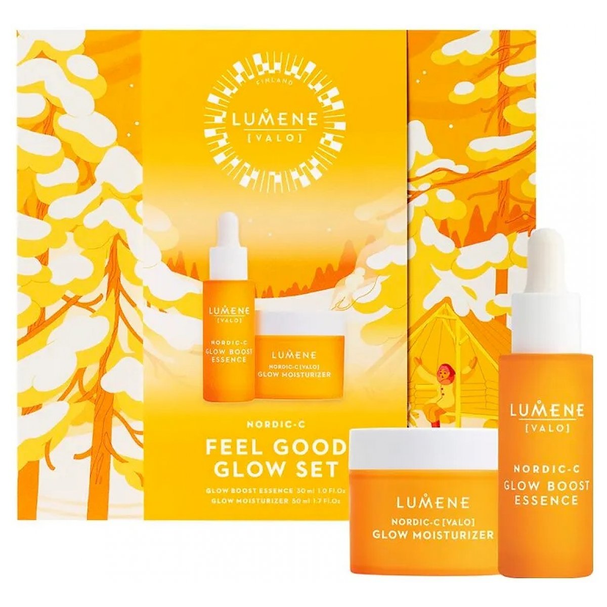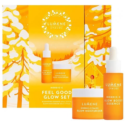 Lumene Nordic-C Valo Feel Good Glow Gift Set - zestaw, który rozświetli Twoją pielęgnacyjną rutynę i podaruje skórze prawdziwy zastrzyk energii. To połączenie nordyckiej natury i innowacyjnej technologii – idealny prezent dla każdej cery spragnionej blasku.