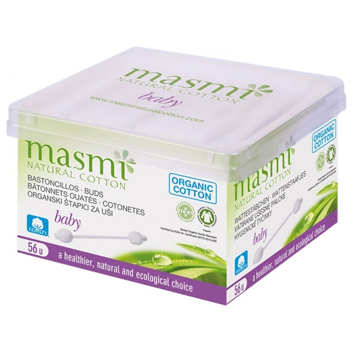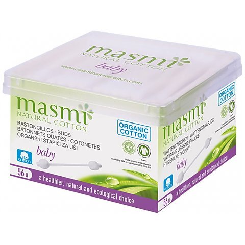 Masmi Natural Cotton - patyczki higieniczne dla dzieci o specjalnym kształcie uniemożliwiającym uszkodzenie błony bębenkowej dziecka. Wykonane w całości ze 100% certyfikowanej bawełny organicznej, są wyjątkowo delikatne i hypoalergiczne - nie powodują podrażnień skóry i alergii. Idealne do oczyszczania i pielęgnacji oczu, uszu, noska i pępka. Nie są bielone chlorem, dzięki czemu nie dochodzi do wytwarzania się toksycznych, rakotwórczych dioksyn. Patyczek wykonany jest z papieru.