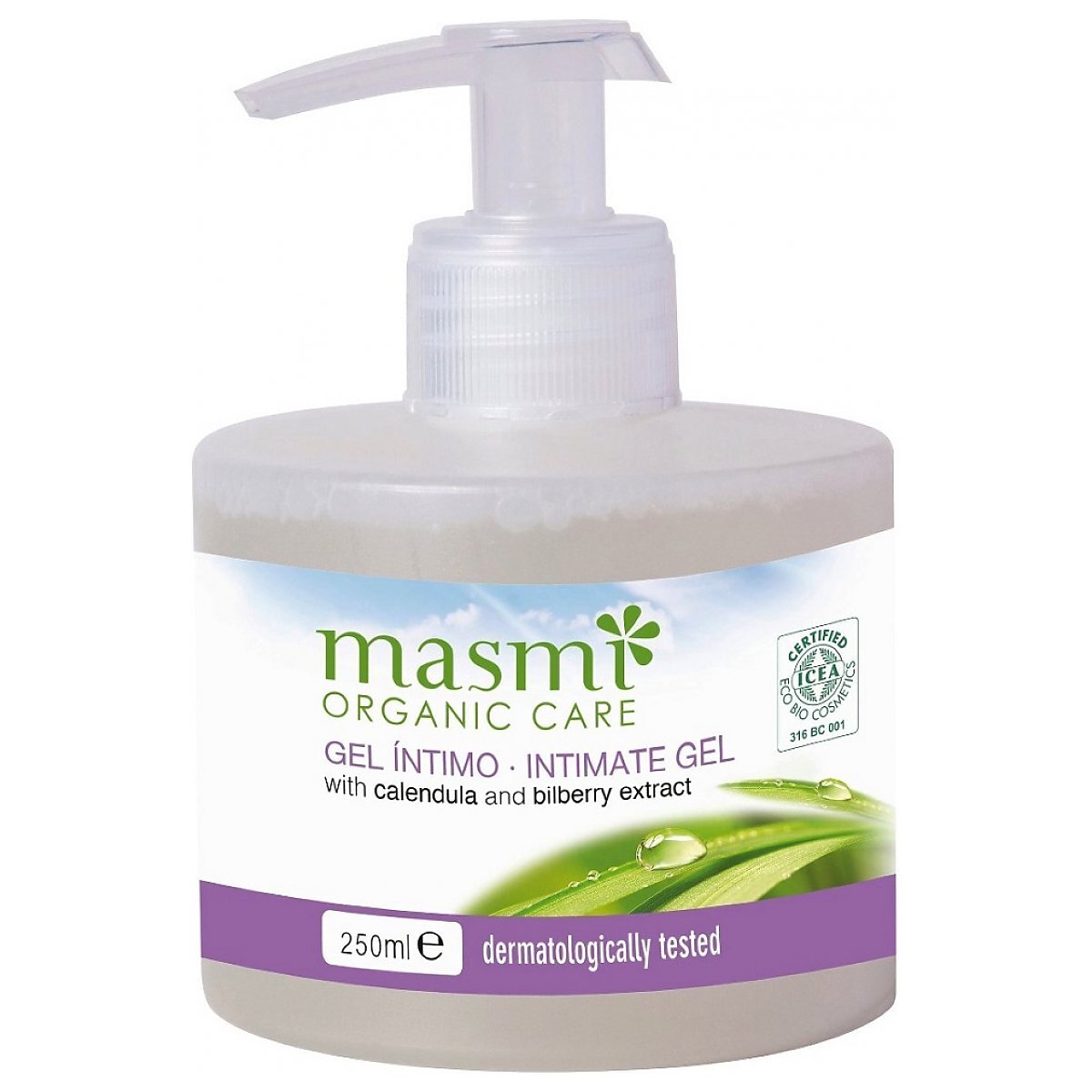 Masmi Organic Care - delikatny dla skóry żel do higieny intymnej wzbogacony o organiczne ekstrakty roślinne: wyciąg z nagietka, znany z właściwości przeciwzapalnych i łagodzących podrażnienia oraz ekstrakt z borówki o właściwościach kojących, pozostawiający uczucie świeżości i czystości.