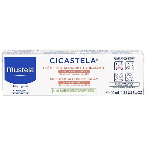 Mustela Cicastela - regeneracyjny krem dedykowany do pielęgnacji miejscowych podrażnień skóry niemowląt i dzieci od pierwszego dnia życia. Skutecznie łagodzi podrażnienia, wspomaga naprawę skóry i zapewnia długotrwały efekt nawilżenia. Jego bezzapachowa formuła zmniejsza uczucie swędzenia i ściągnięcia, pozostawiając na skórze ochronny film. Skóra odzyskuje elastyczność i uczucie komfortu.