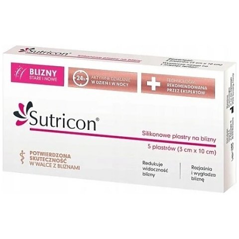 Sutricon - silikonowe plastry na blizny przeznaczone są do stosowania w leczeniu blizn przerostowych (hipertroficznych), blizn keloidowych (bliznowców) starych i nowych; w zapobieganiu nieprawidłowego bliznowaceniu ran zamkniętych