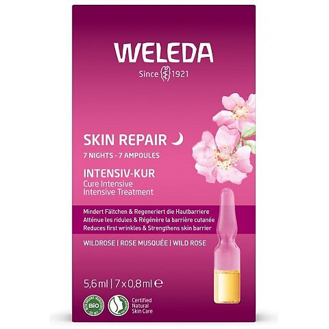 Weleda Skin Repair - ożyw swoją skórę już w 7 dni dzięki intensywnej kuracji z dziką różą. Ta w 100% naturalna formuła, oparta na pięciu starannie dobranych olejkach roślinnych, wspiera regenerację skóry, przywracając jej równowagę, gładkość i elastyczność. Cenny olejek z chilijskiej dzikiej róży wzmacnia barierę ochronną skóry, pomagając utrzymać optymalny poziom nawilżenia i zdrowy wygląd.