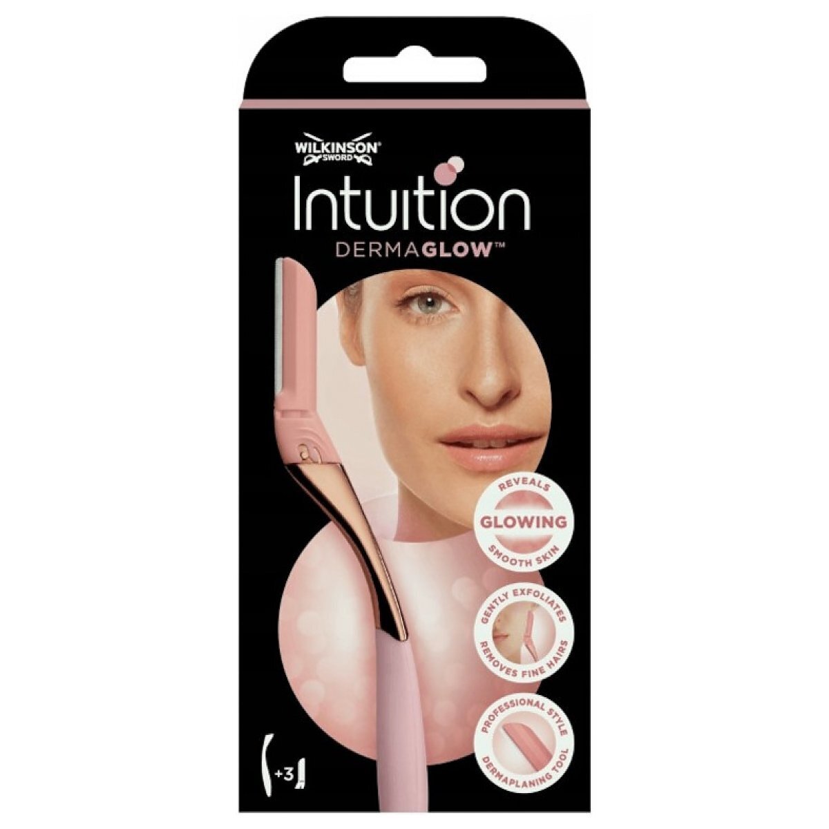 Wilkinson Intuition Dermaglow - profesjonalne narzędzie do dermaplaningu w domowym zaciszu. Natychmiast poprawia wygląd skóry, usuwając martwe komórki naskórka i meszek. Wysokiej jakości metalowy uchwyt o zakrzywionej konstrukcji i antypoślizgowy silikon gwarantują łatwe i bezpieczne użytkowanie oraz delikatnie przesuwają się po wrażliwej skórze twarzy - wszystko dla doskonałego rezultatu.