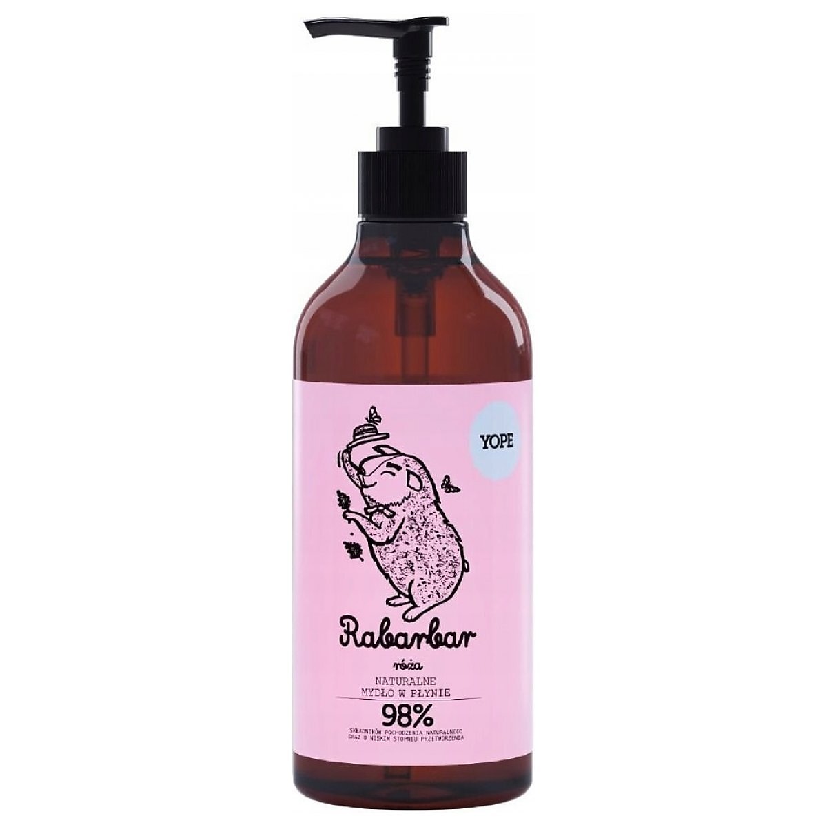 Yope - naturalne mydło do rąk. Delikatnie myje skórę, jednocześnie o nią dbając. Zapach łączy lekko kwaskowaty, wytrawny rabarbar ze słodką, kwiatową różą.